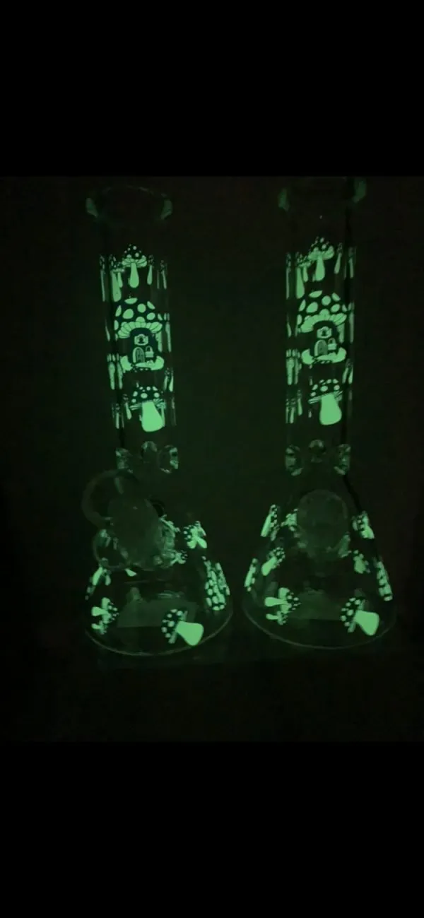 Get you Premium Glow In The Dark Mushrooms Glass Beaker Bong Today!