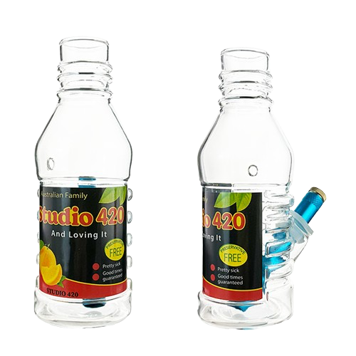- Artistic Design: Shaped like a vibrant orange bottle, complete with the bold “Studio 420” label, this bong serves not just as a smoking device but as a statement piece for your collection.